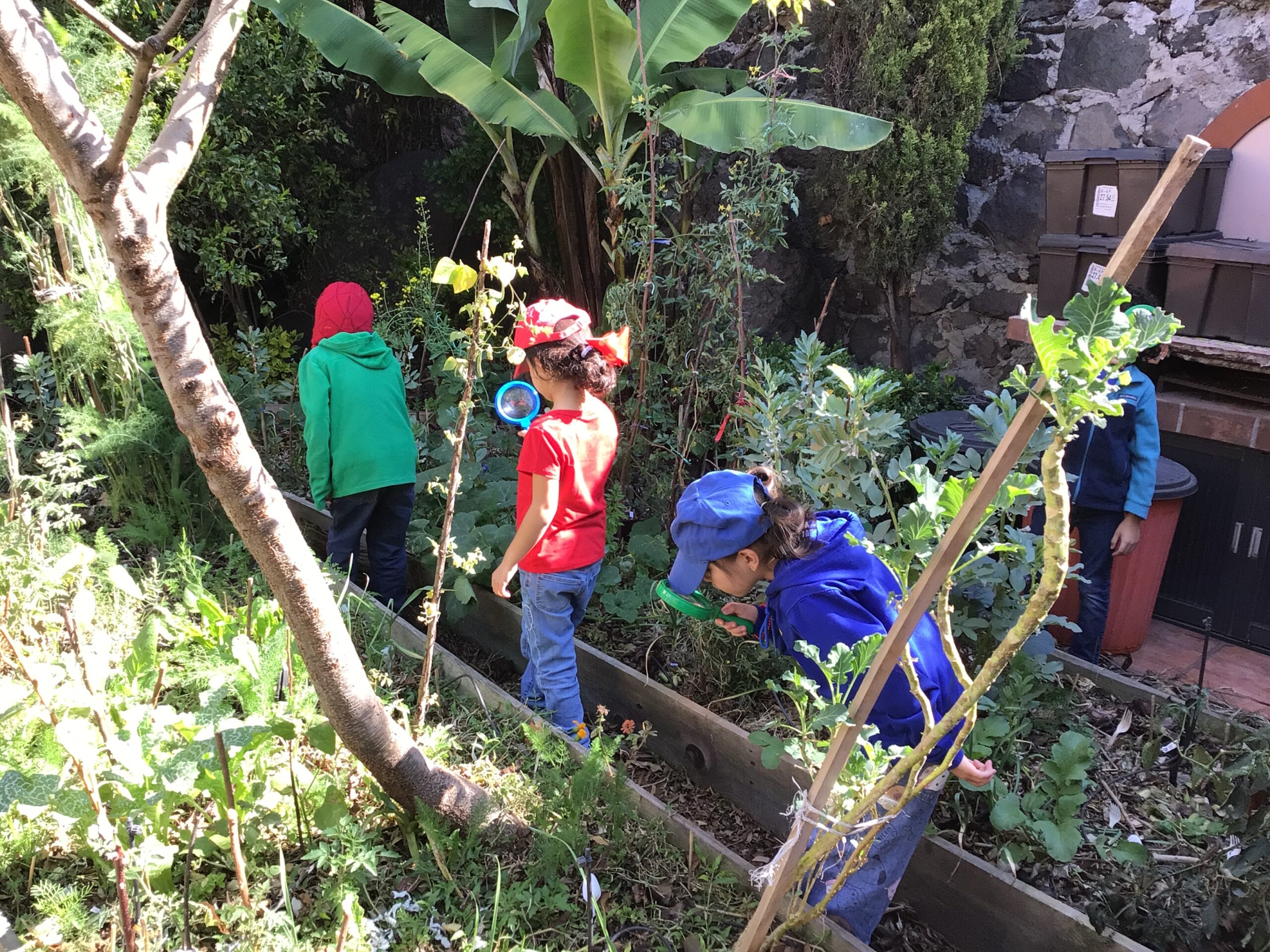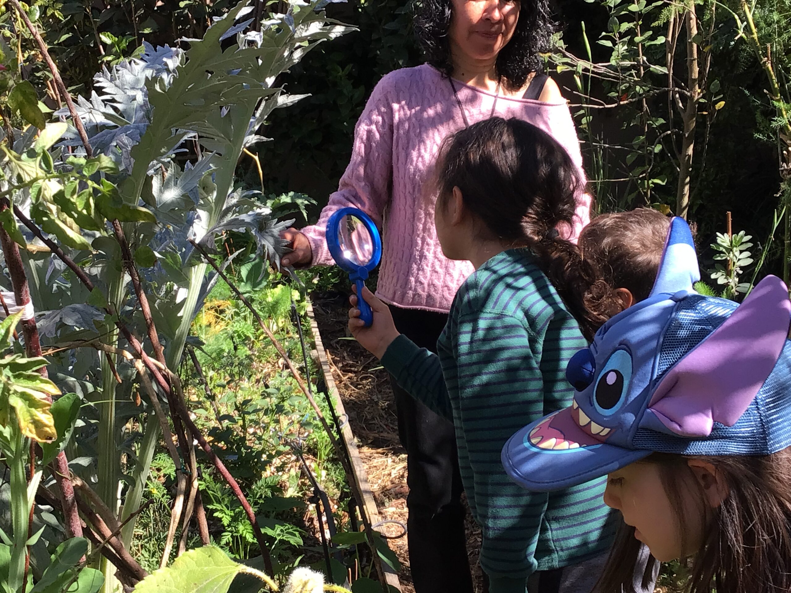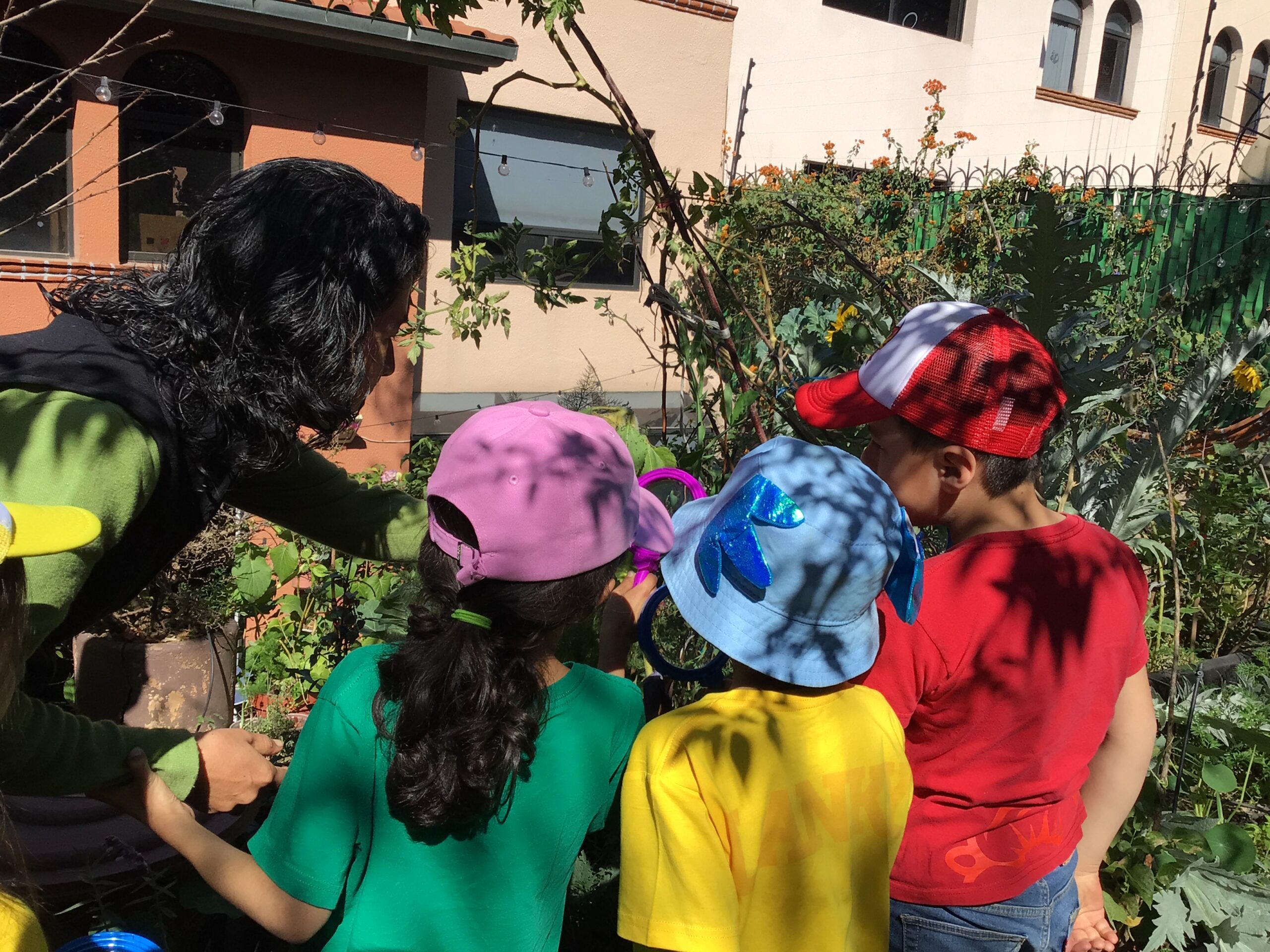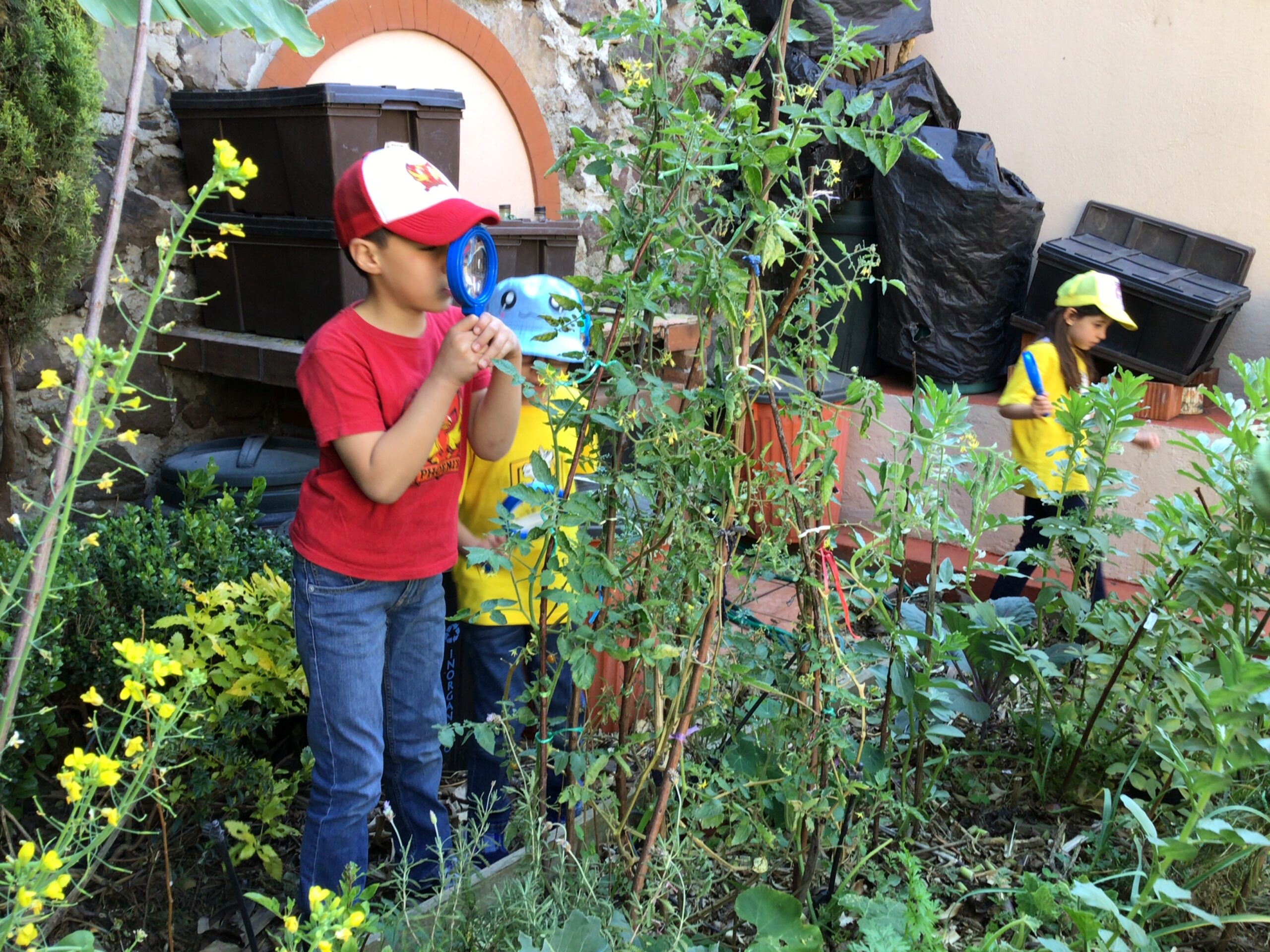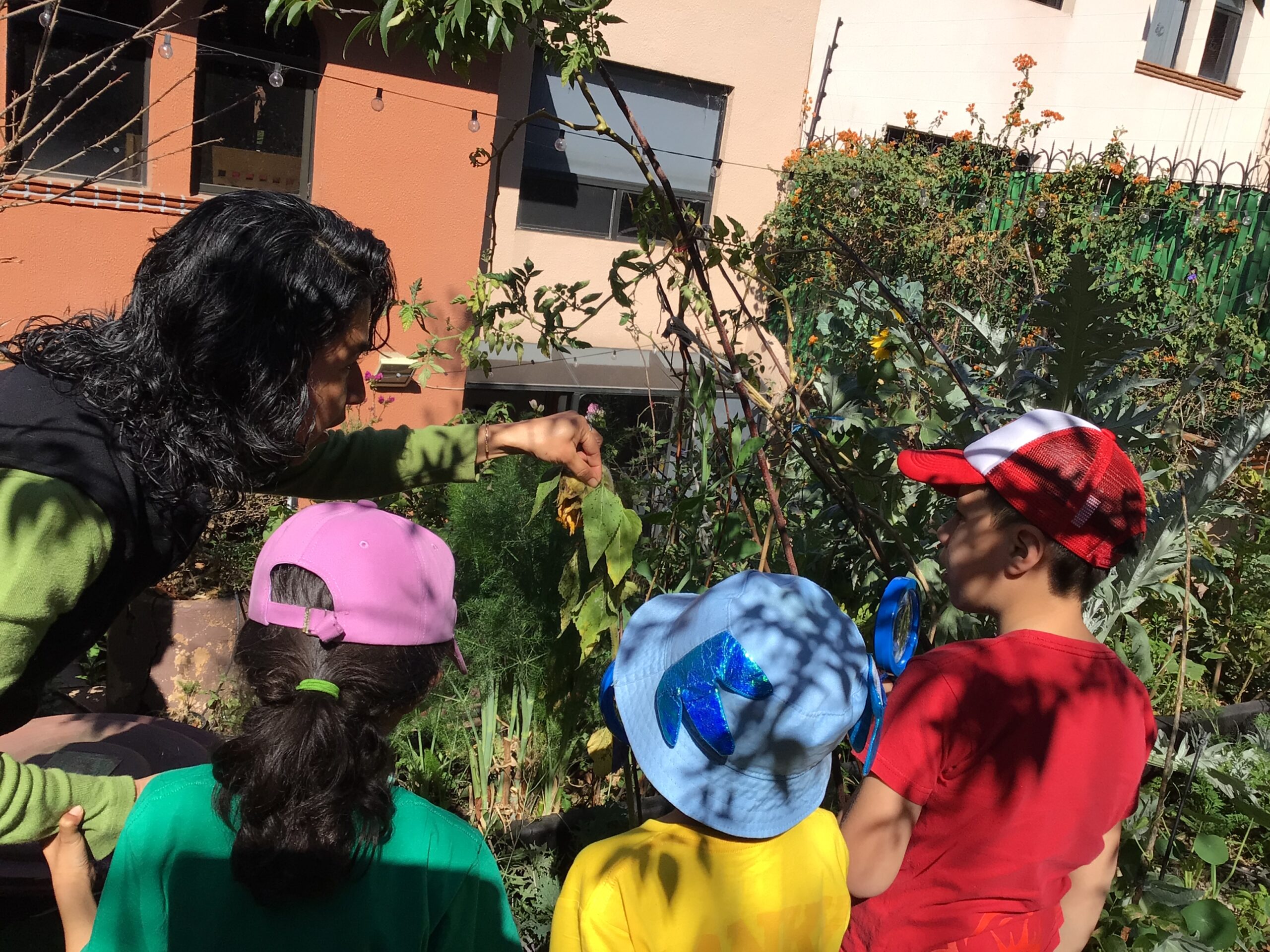 Children in Pre First went to visit the edible garden of Claudia Bonilla, a member of the school community and one of the founders of the RY Ecology Committee. She grows part of her food in her backyard and she showed students all the biodiversity she had living in her garden. It was very interesting to use magnifying lenses to see the tiny eggs that are laid by butterflies on the back of Nastertium leaves and then they were able to spot a small caterpillar that will eventually turn into a butterfly.