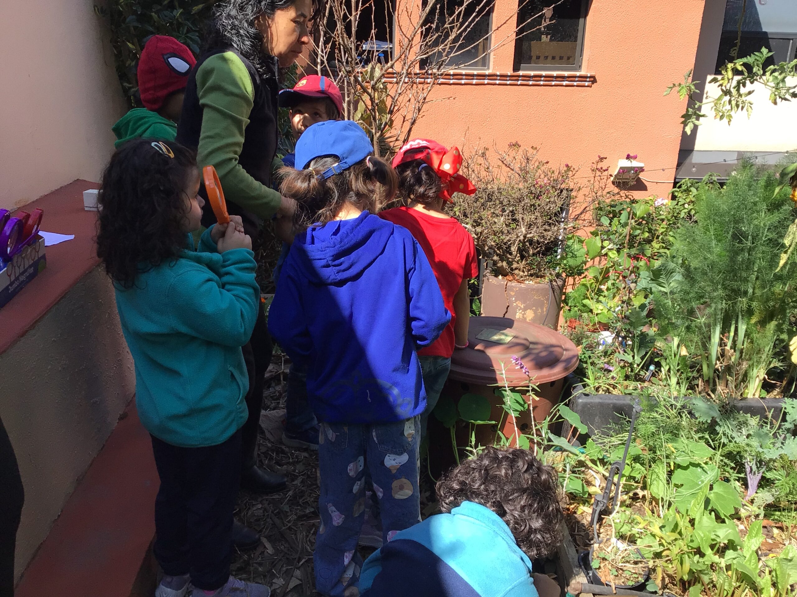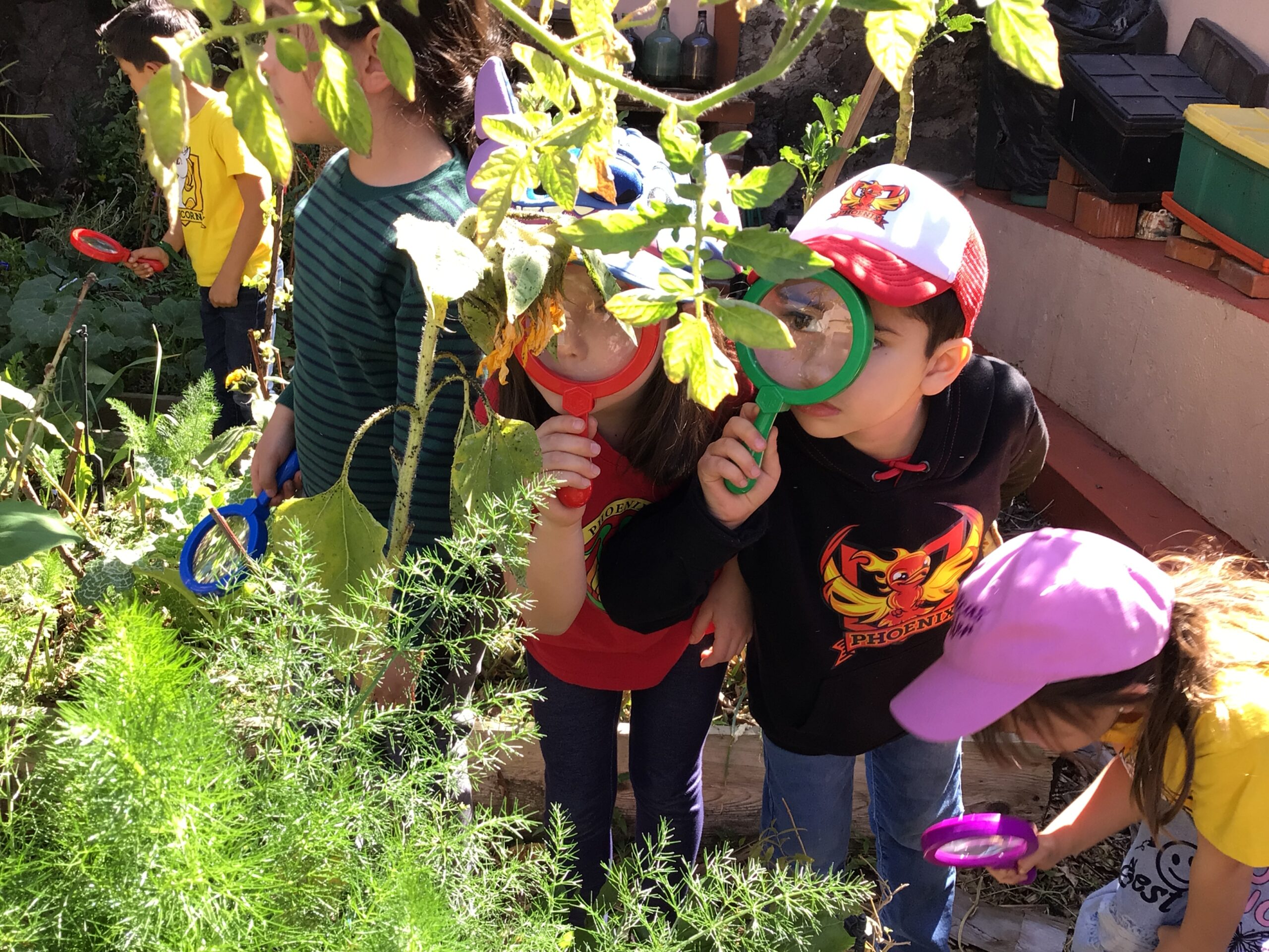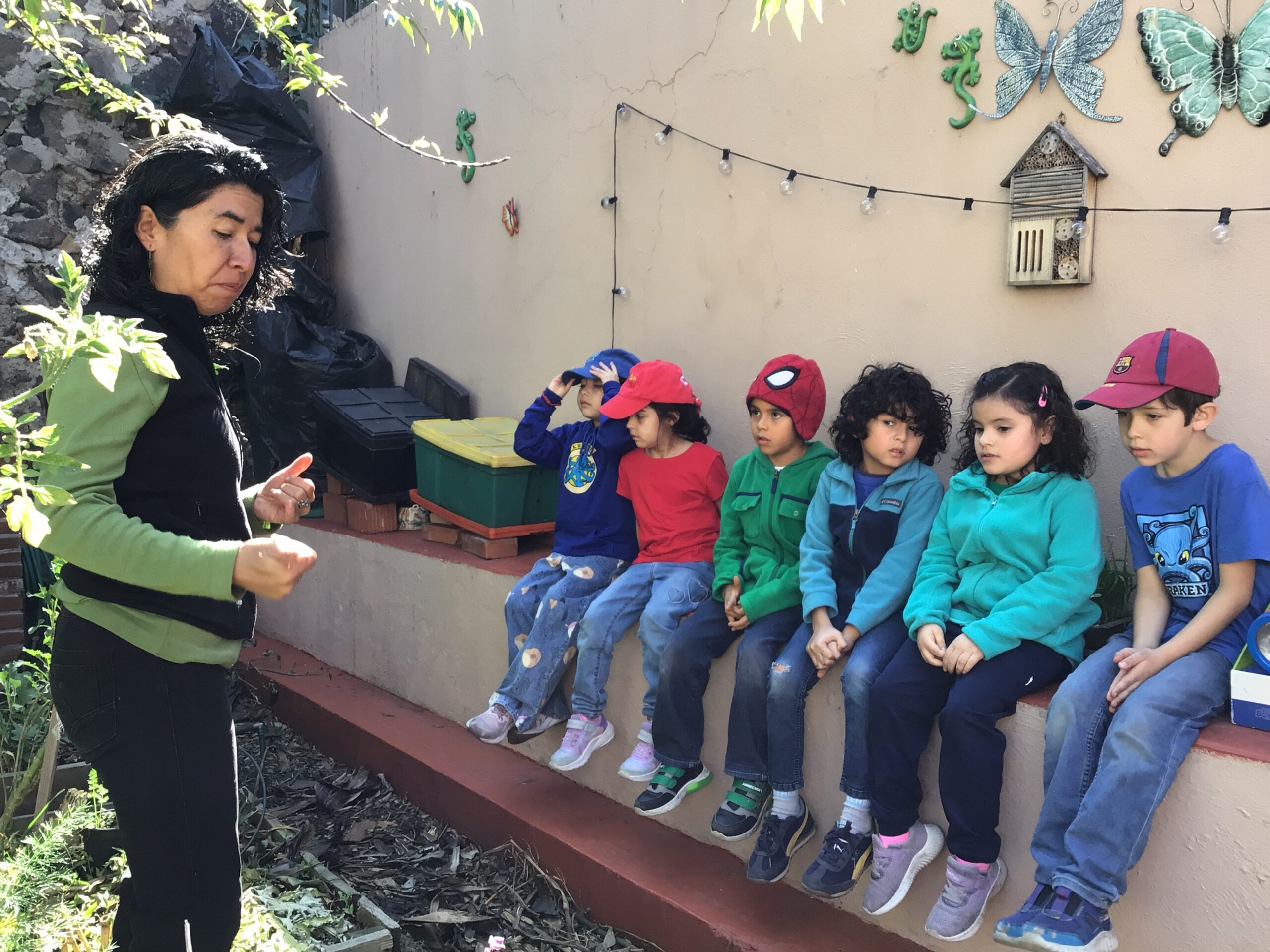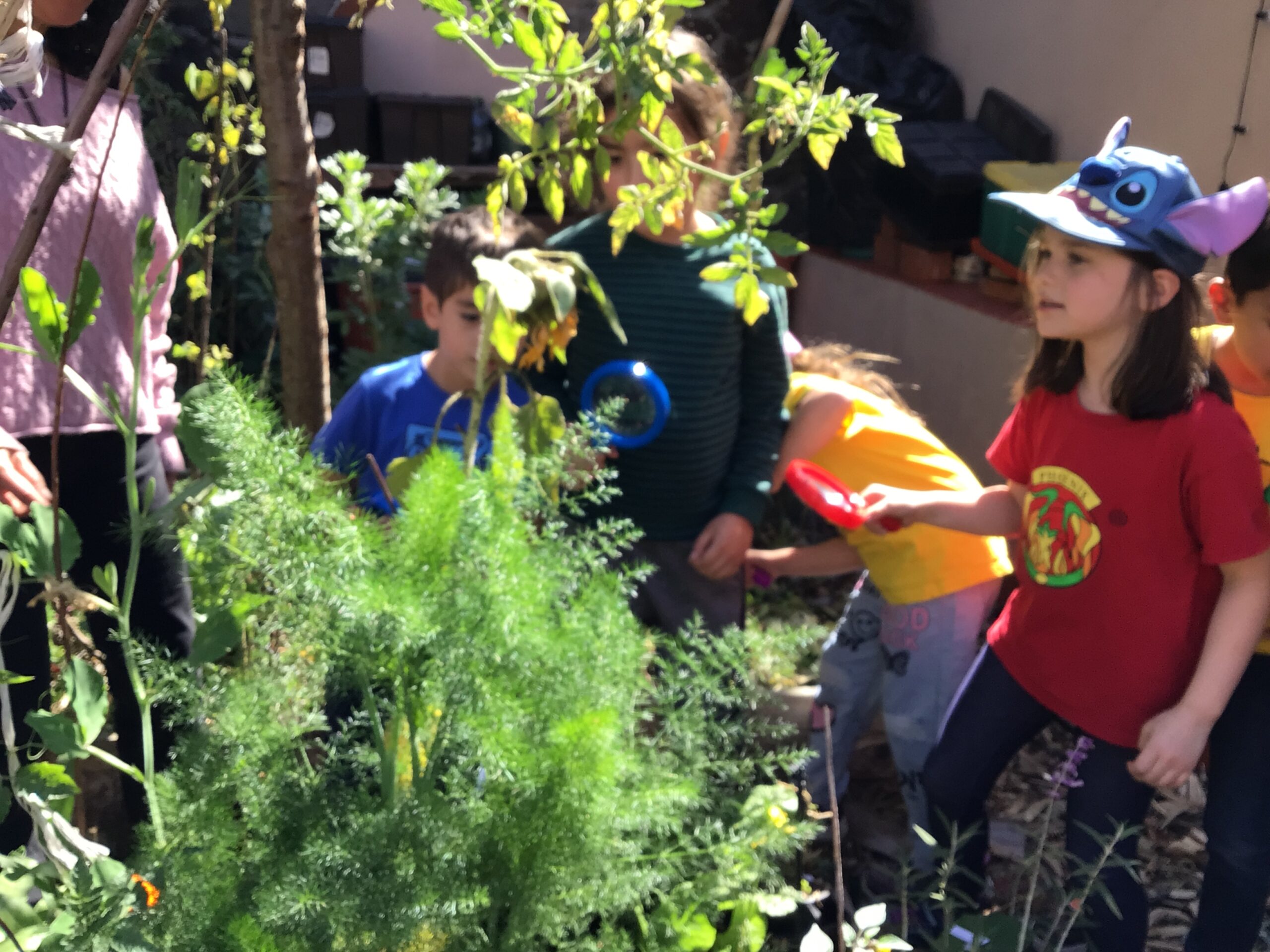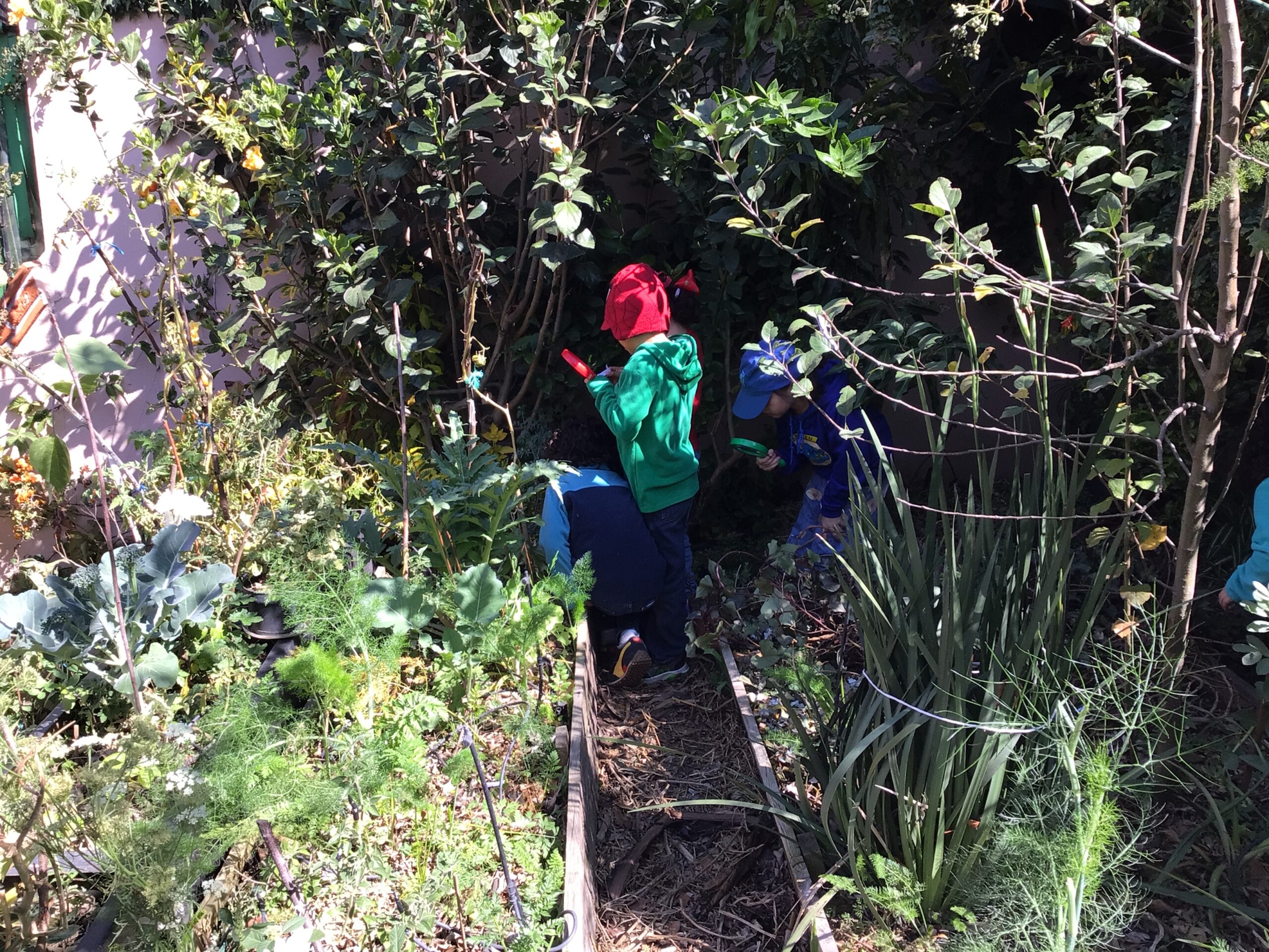 Children in Pre First went to visit the edible garden of Claudia Bonilla, a member of the school community and one of the founders of the RY Ecology Committee. She grows part of her food in her backyard and she showed students all the biodiversity she had living in her garden. It was very interesting to use magnifying lenses to see the tiny eggs that are laid by butterflies on the back of Nastertium leaves and then they were able to spot a small caterpillar that will eventually turn into a butterfly.
