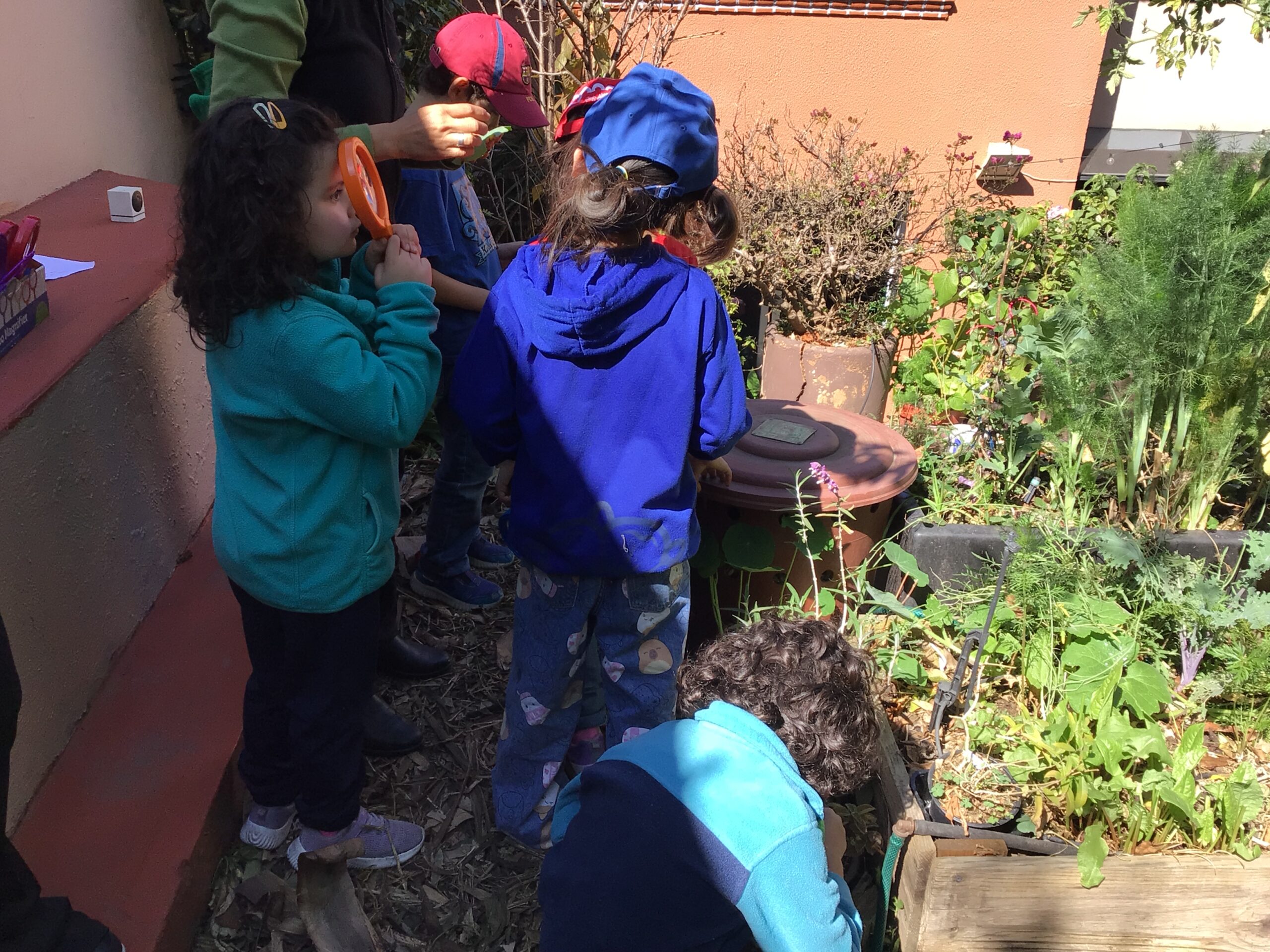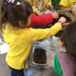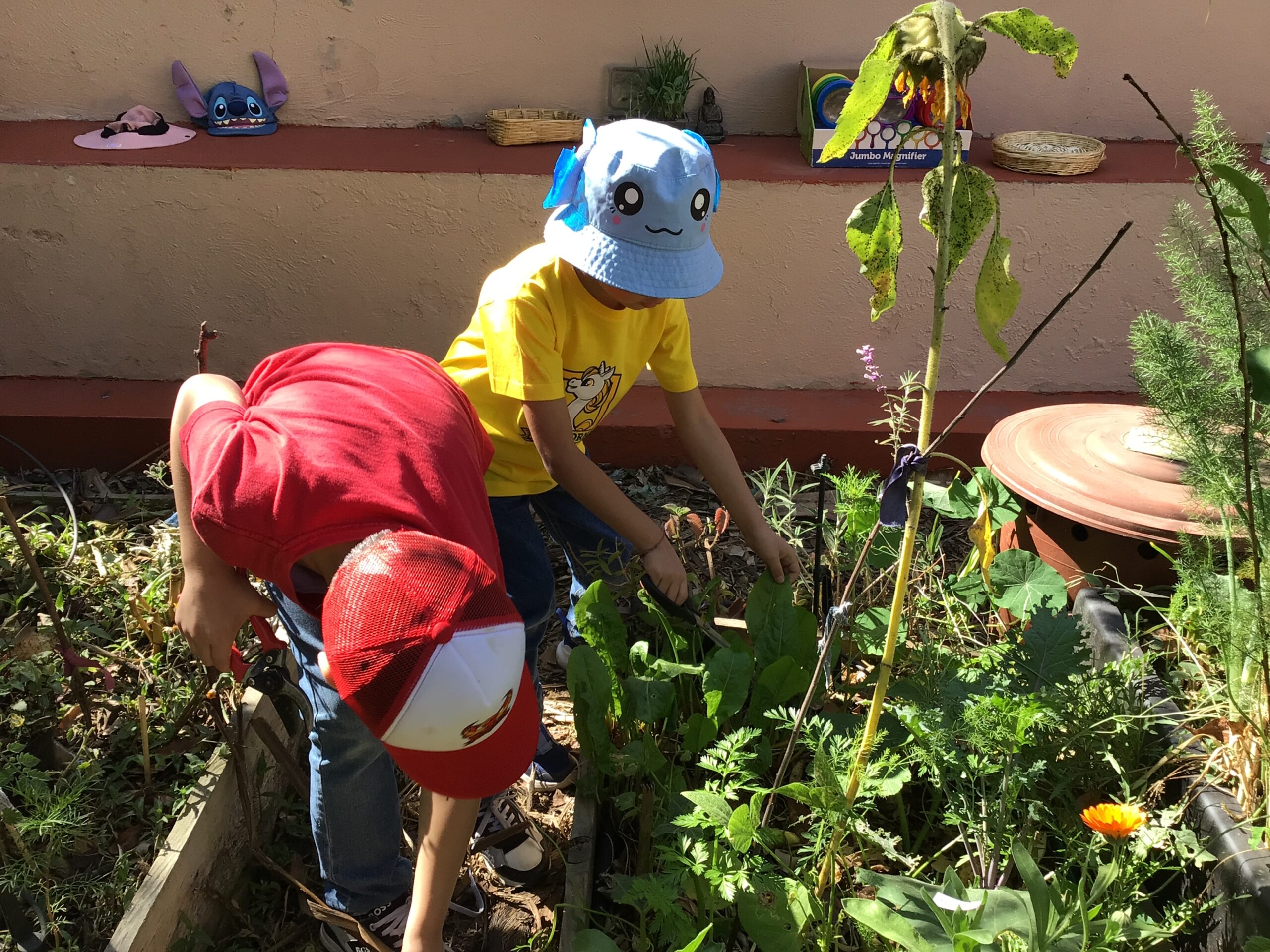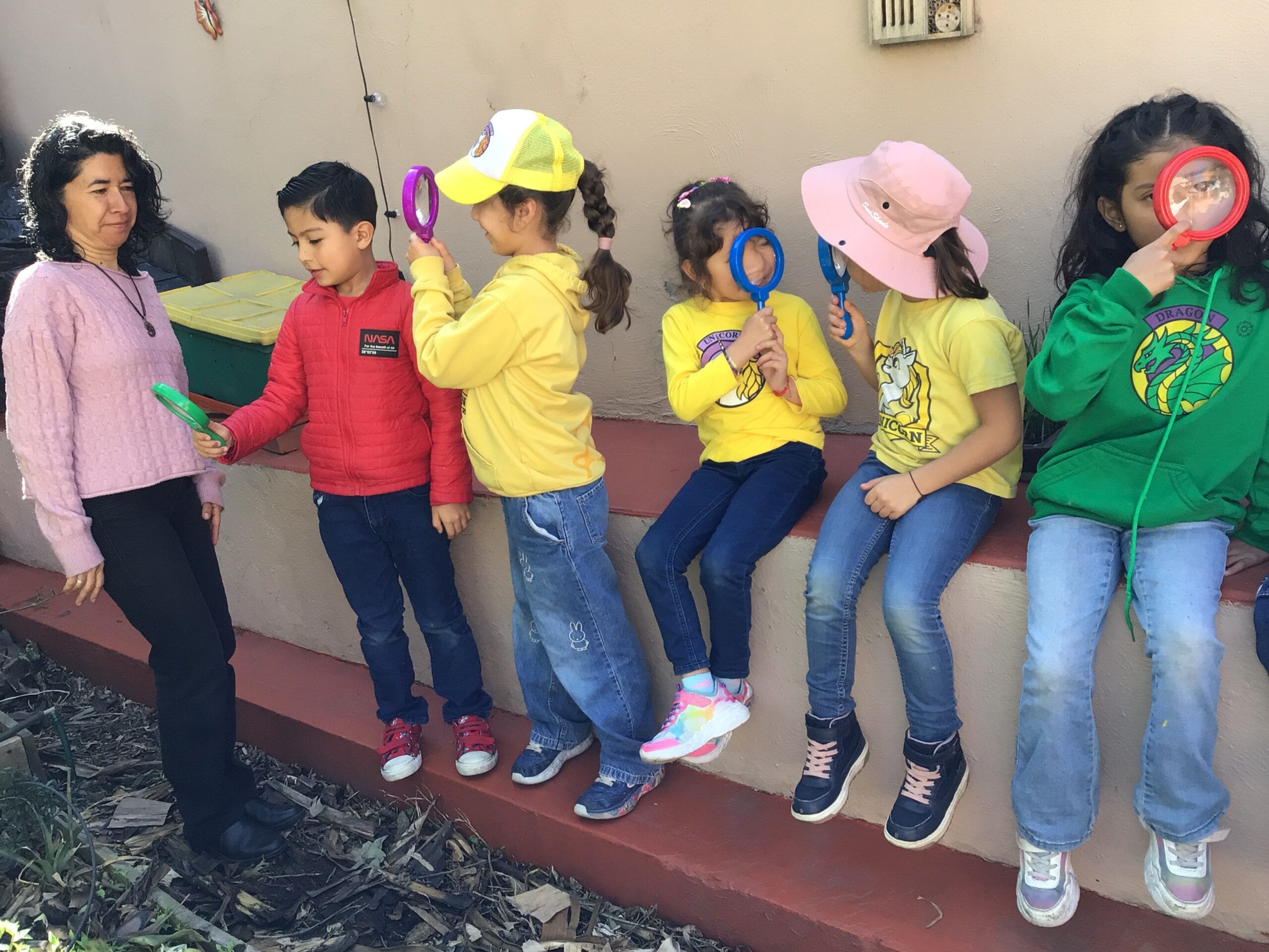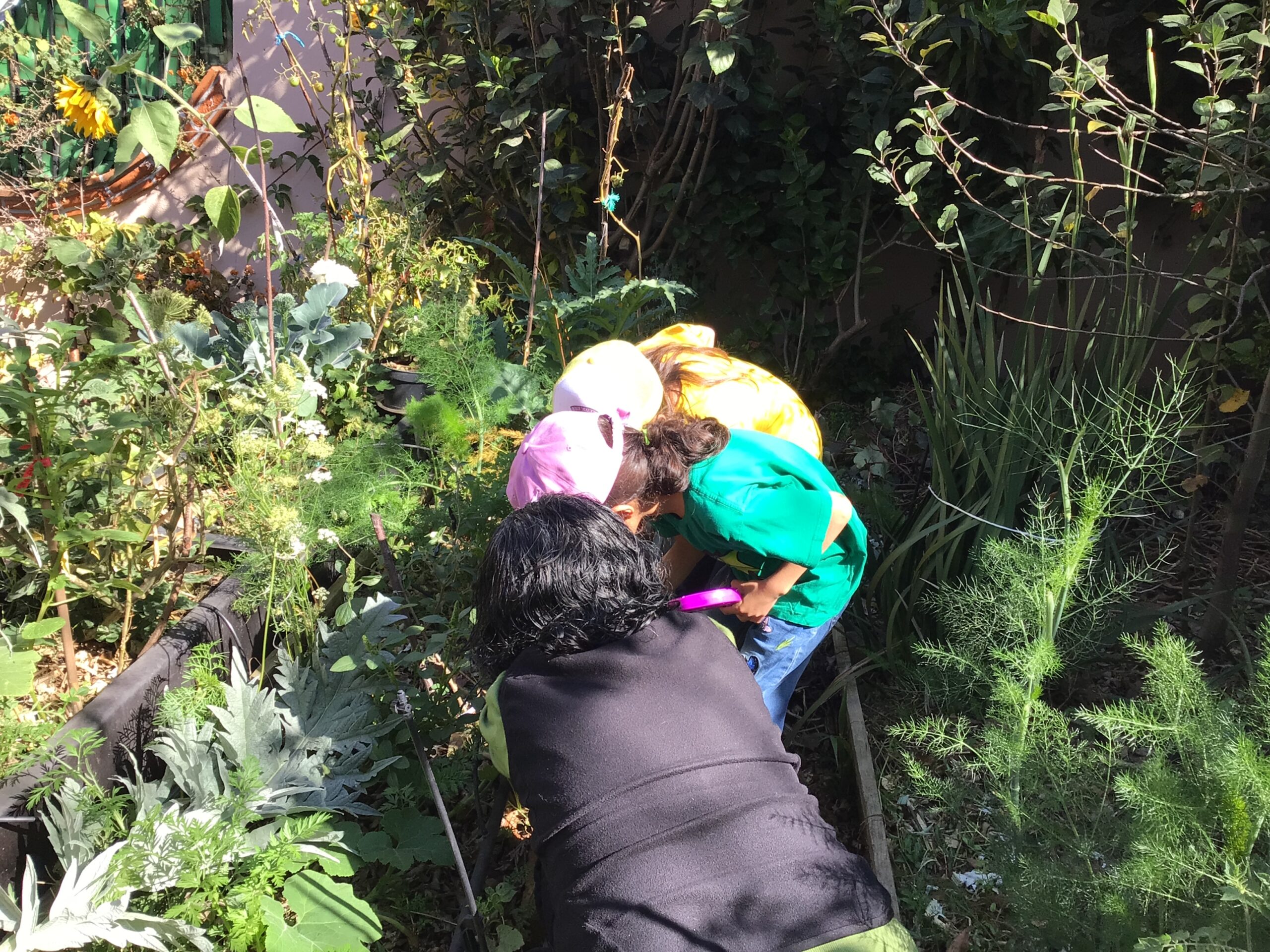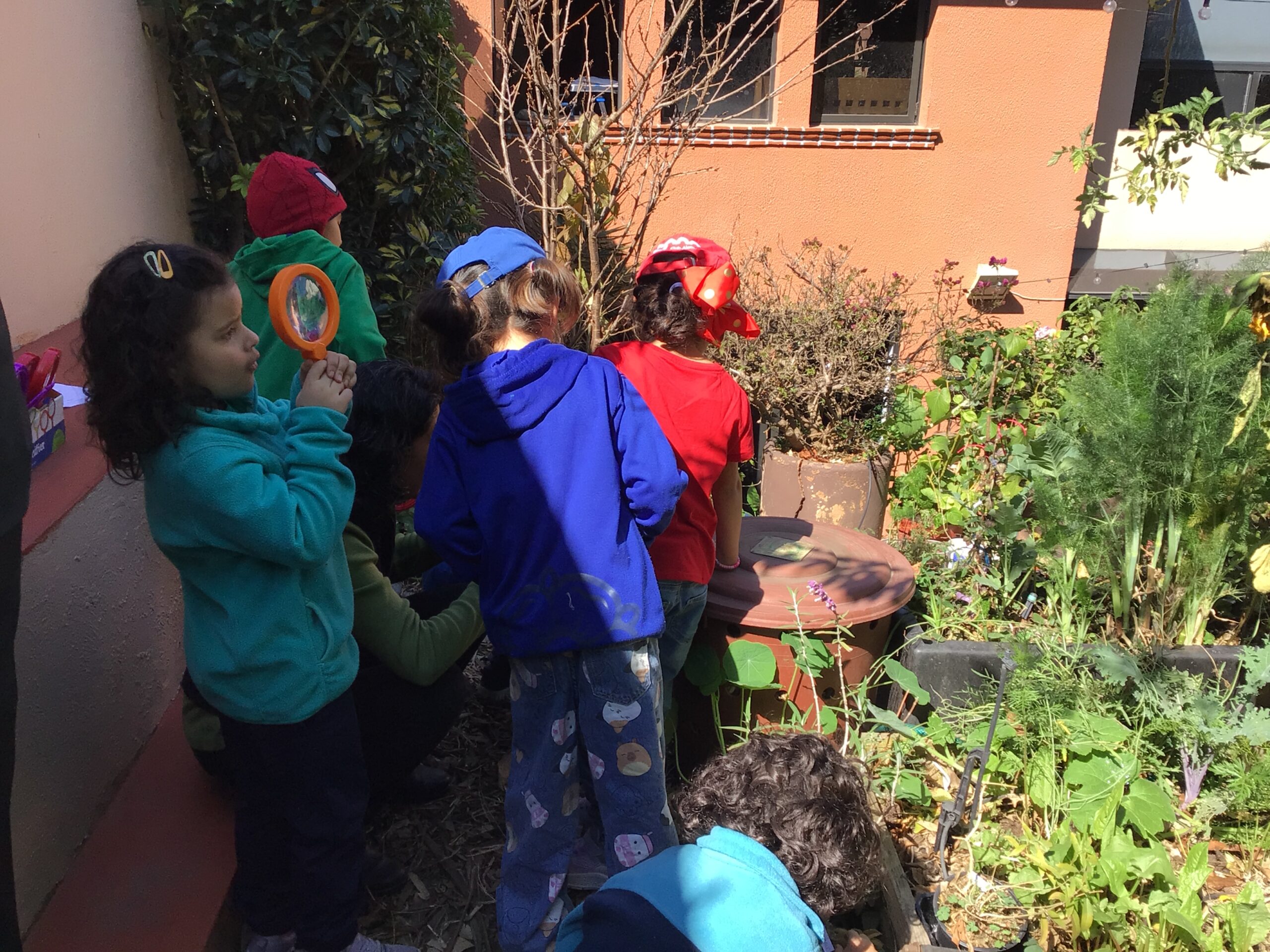 Children in Pre First went to visit the edible garden of Claudia Bonilla, a member of the school community and one of the founders of the RY Ecology Committee. She grows part of her food in her backyard and she showed students all the biodiversity she had living in her garden. It was very interesting to use magnifying lenses to see the tiny eggs that are laid by butterflies on the back of Nastertium leaves and then they were able to spot a small caterpillar that will eventually turn into a butterfly.