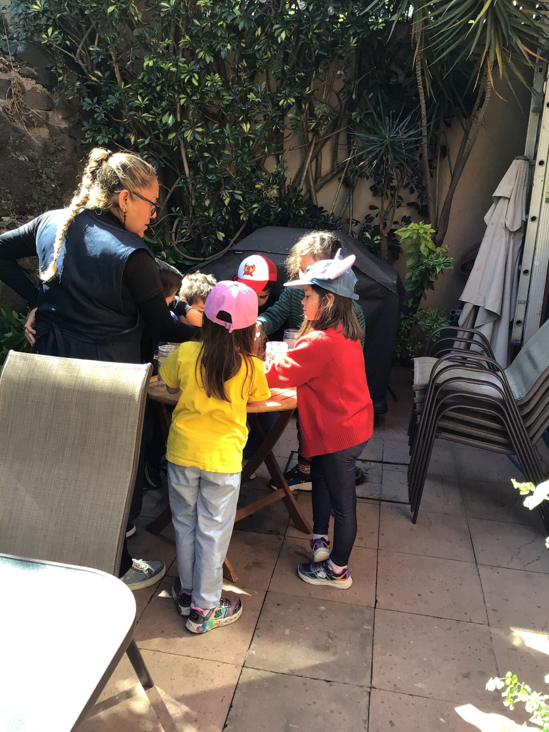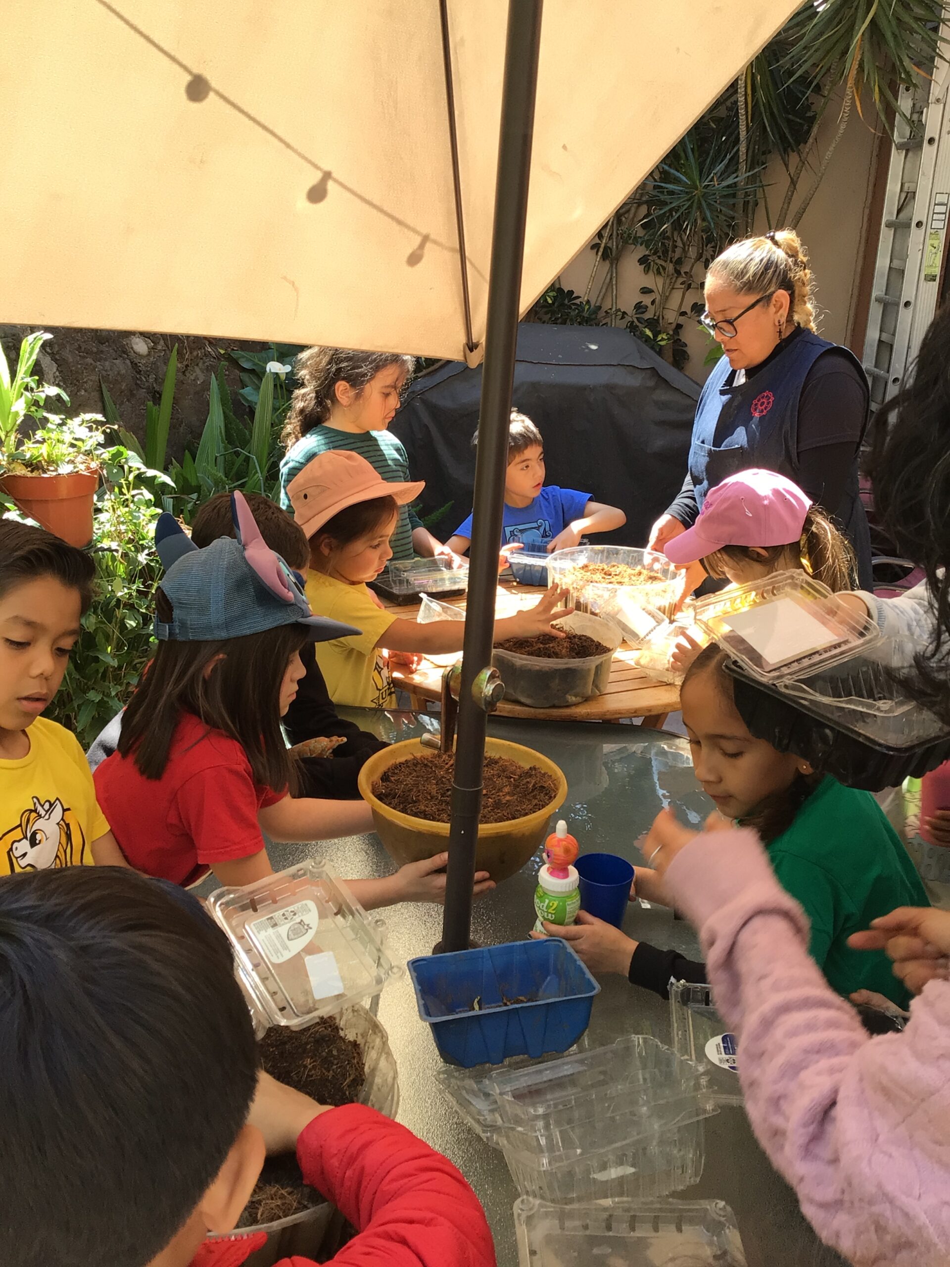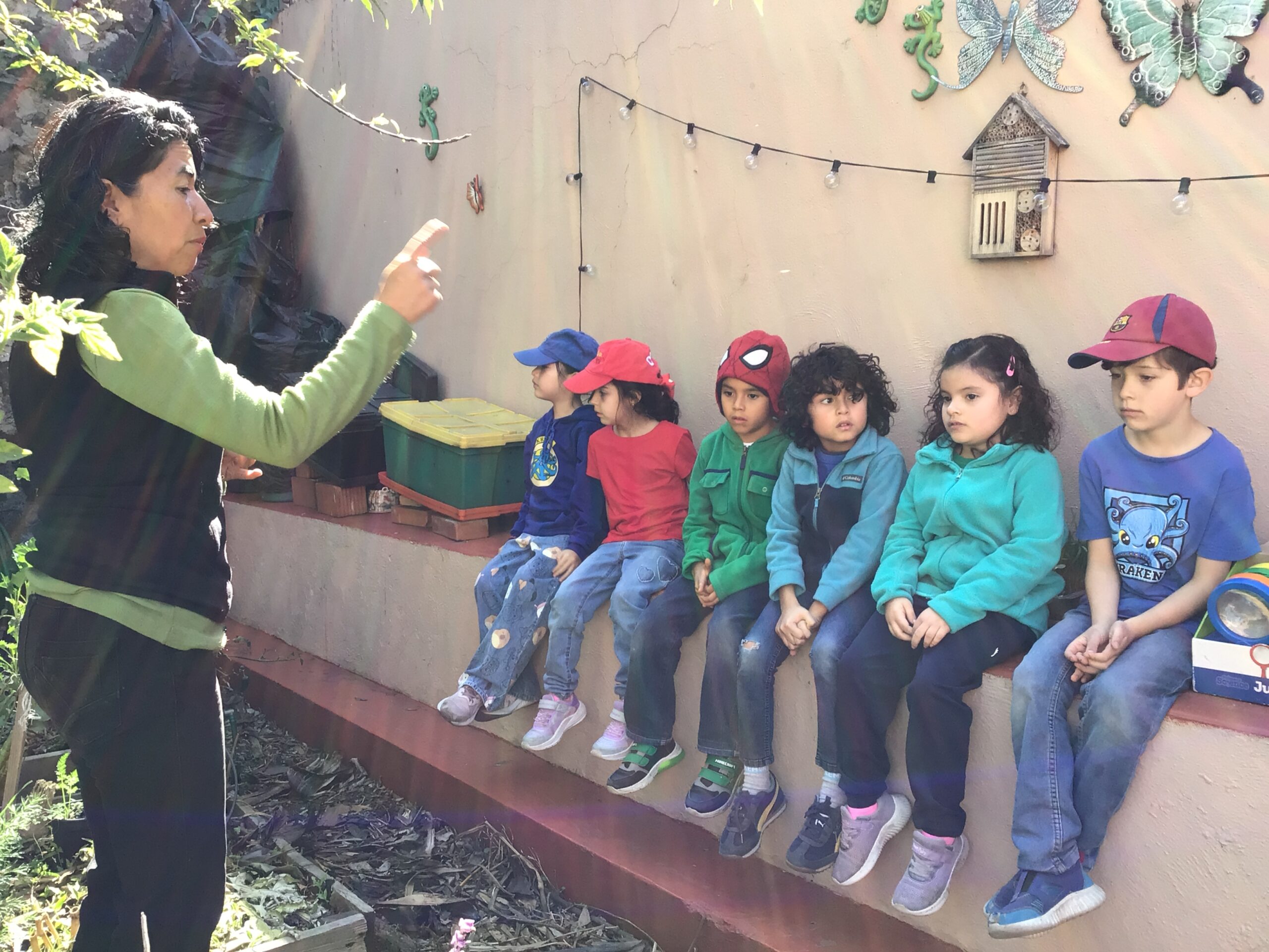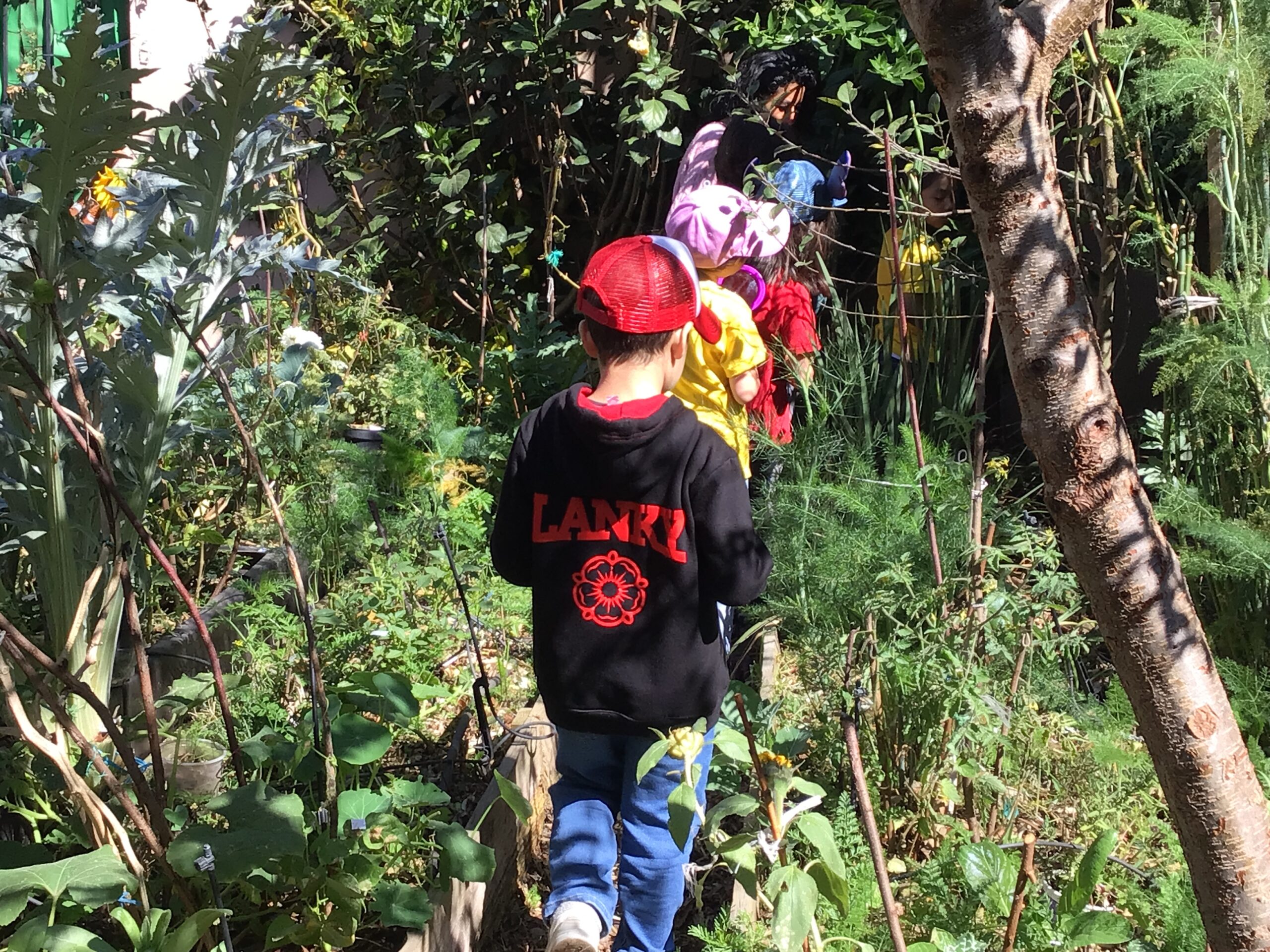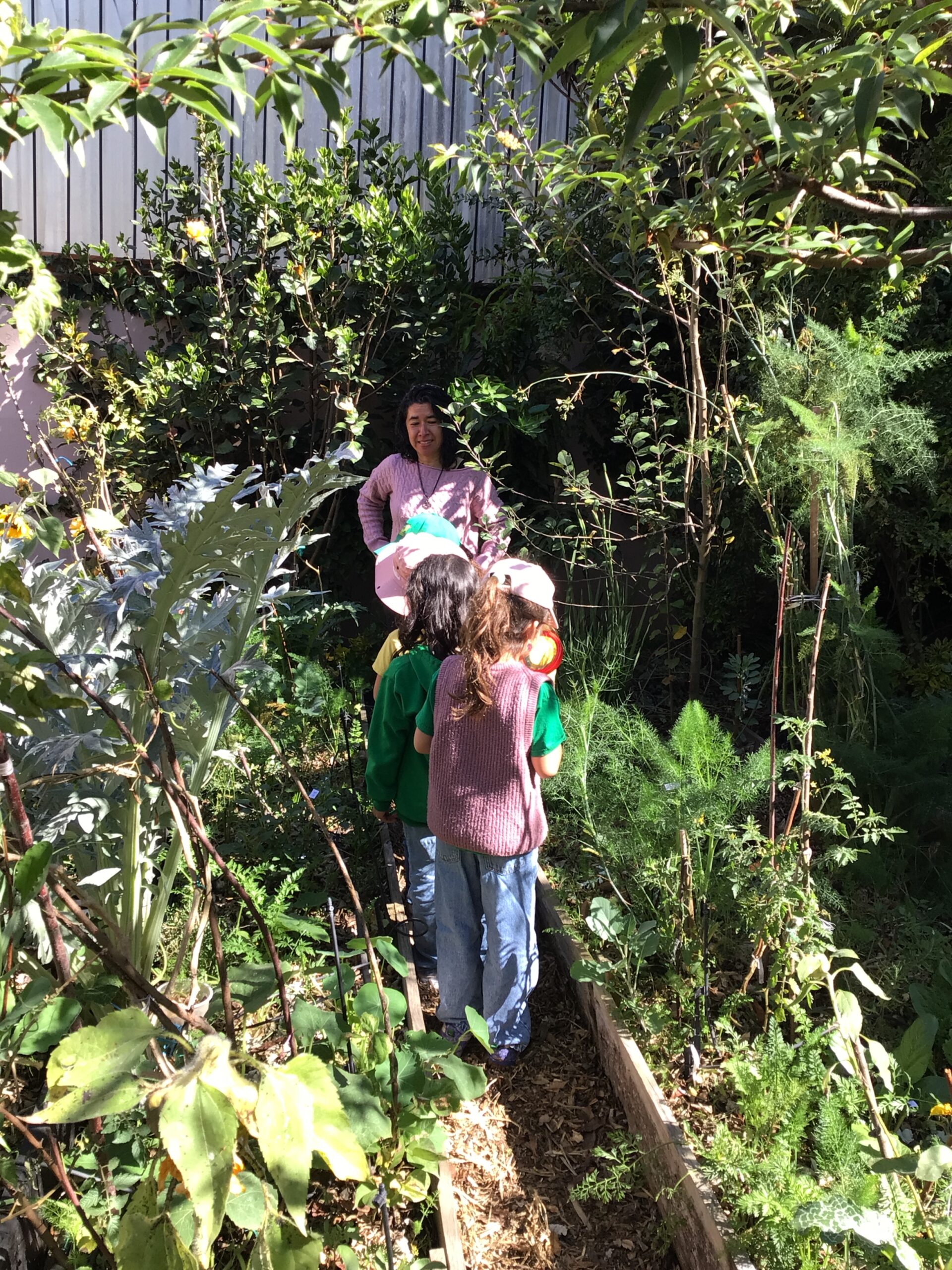 Children in Pre First went to visit the edible garden of Claudia Bonilla, a member of the school community and one of the founders of the RY Ecology Committee. She grows part of her food in her backyard and she showed students all the biodiversity she had living in her garden. It was very interesting to use magnifying lenses to see the tiny eggs that are laid by butterflies on the back of Nastertium leaves and then they were able to spot a small caterpillar that will eventually turn into a butterfly.