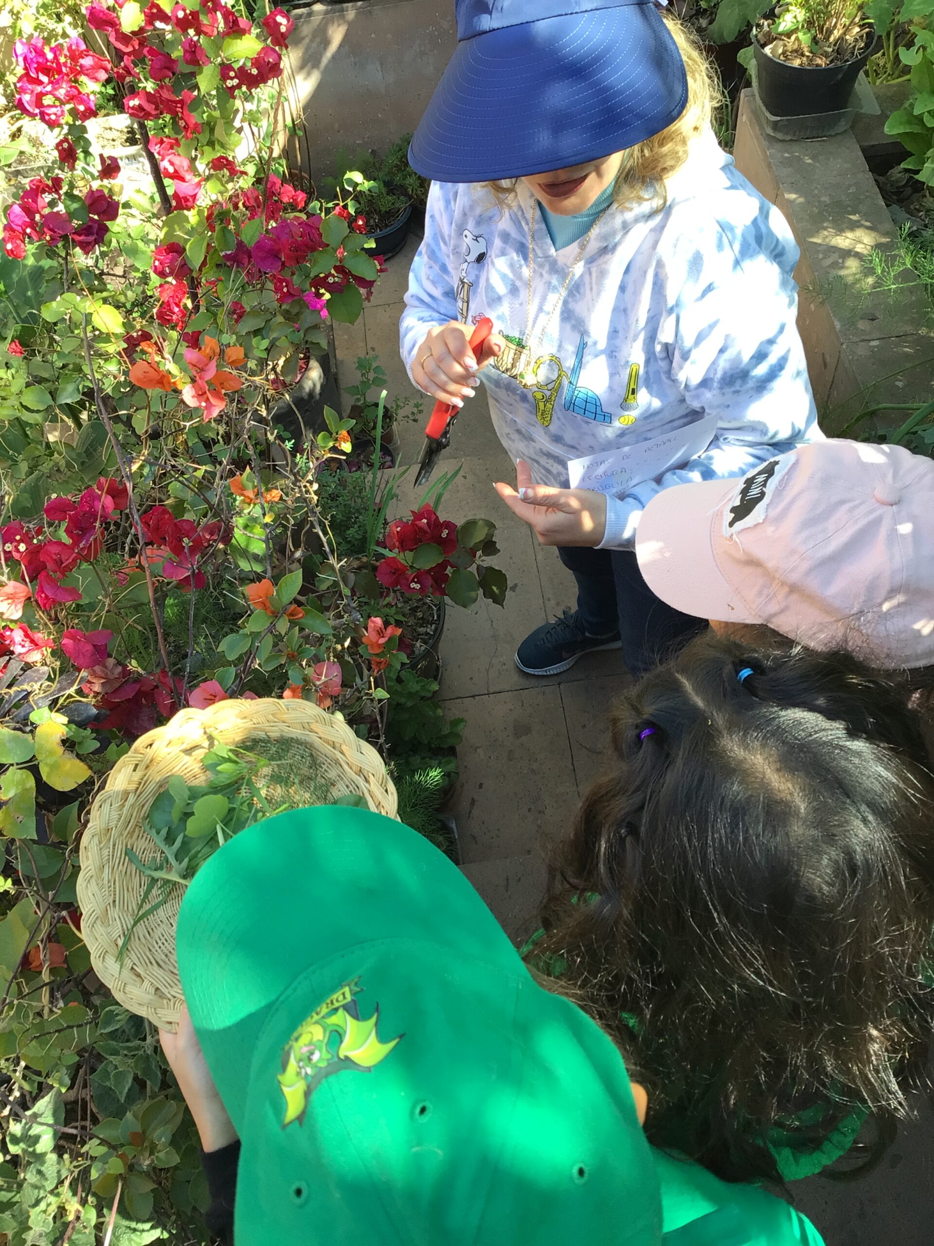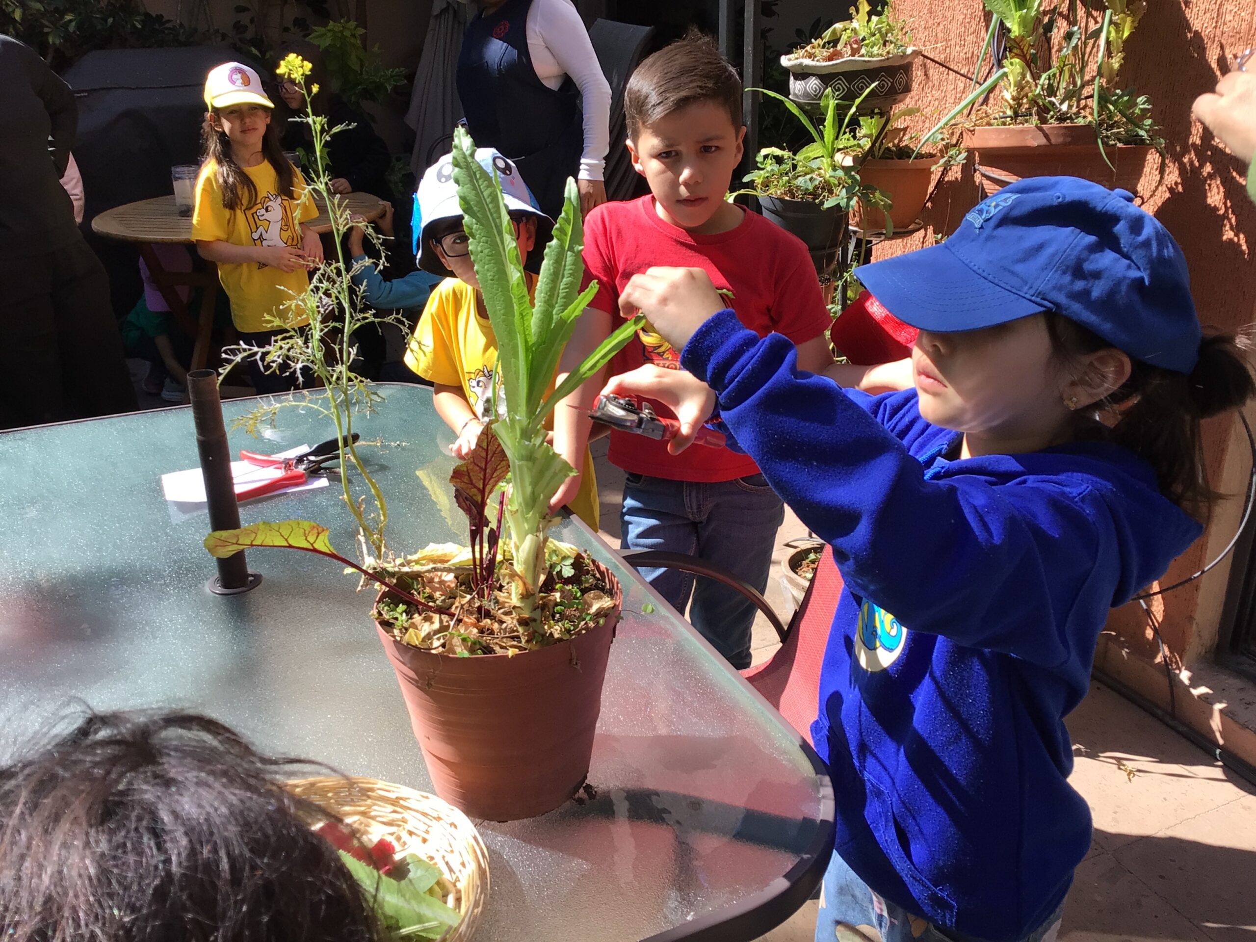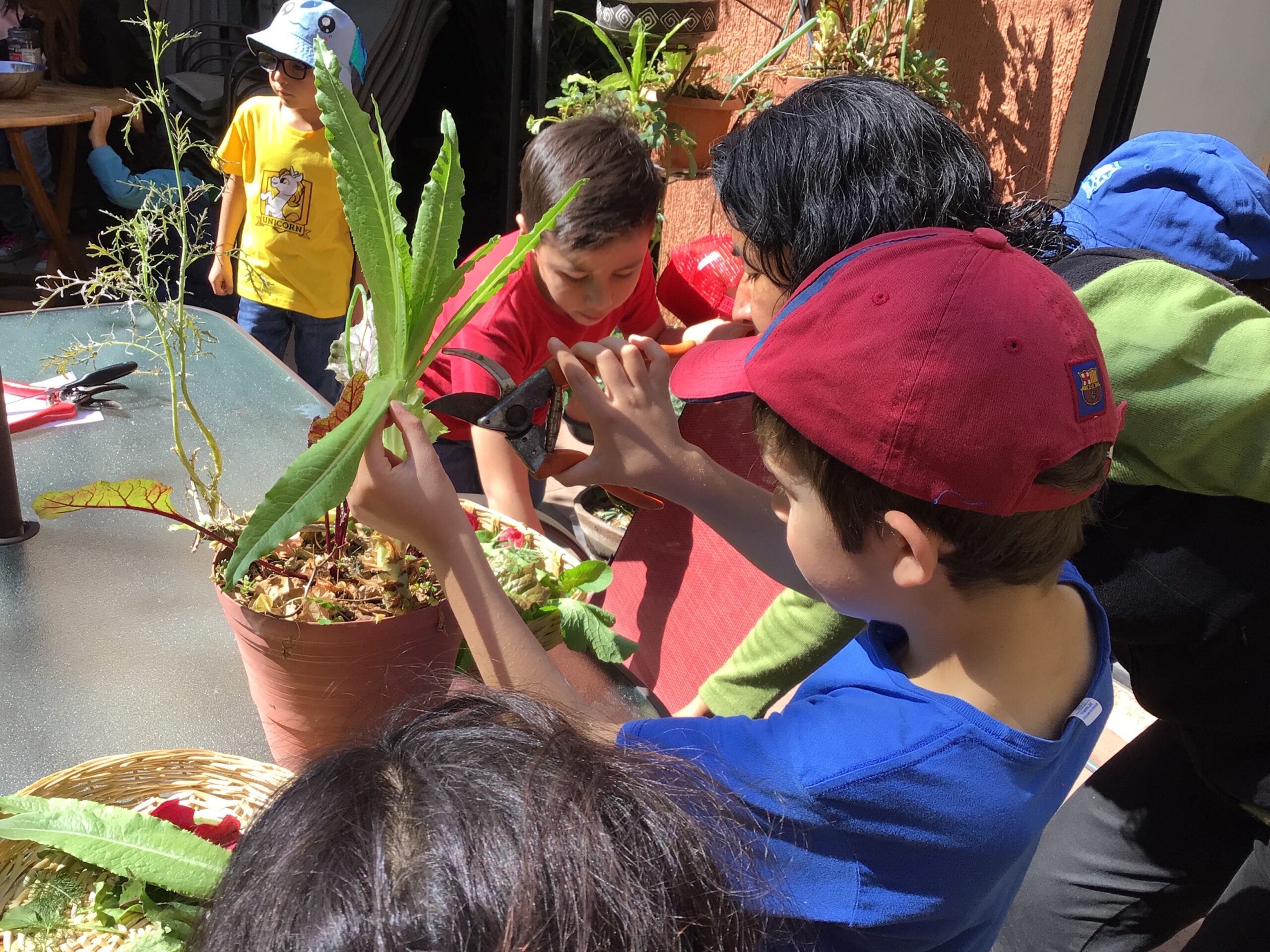 Afterwards, children were given floral shears and they carefully cut different edible leaves and flowers to then rinse and they ate in a salad.