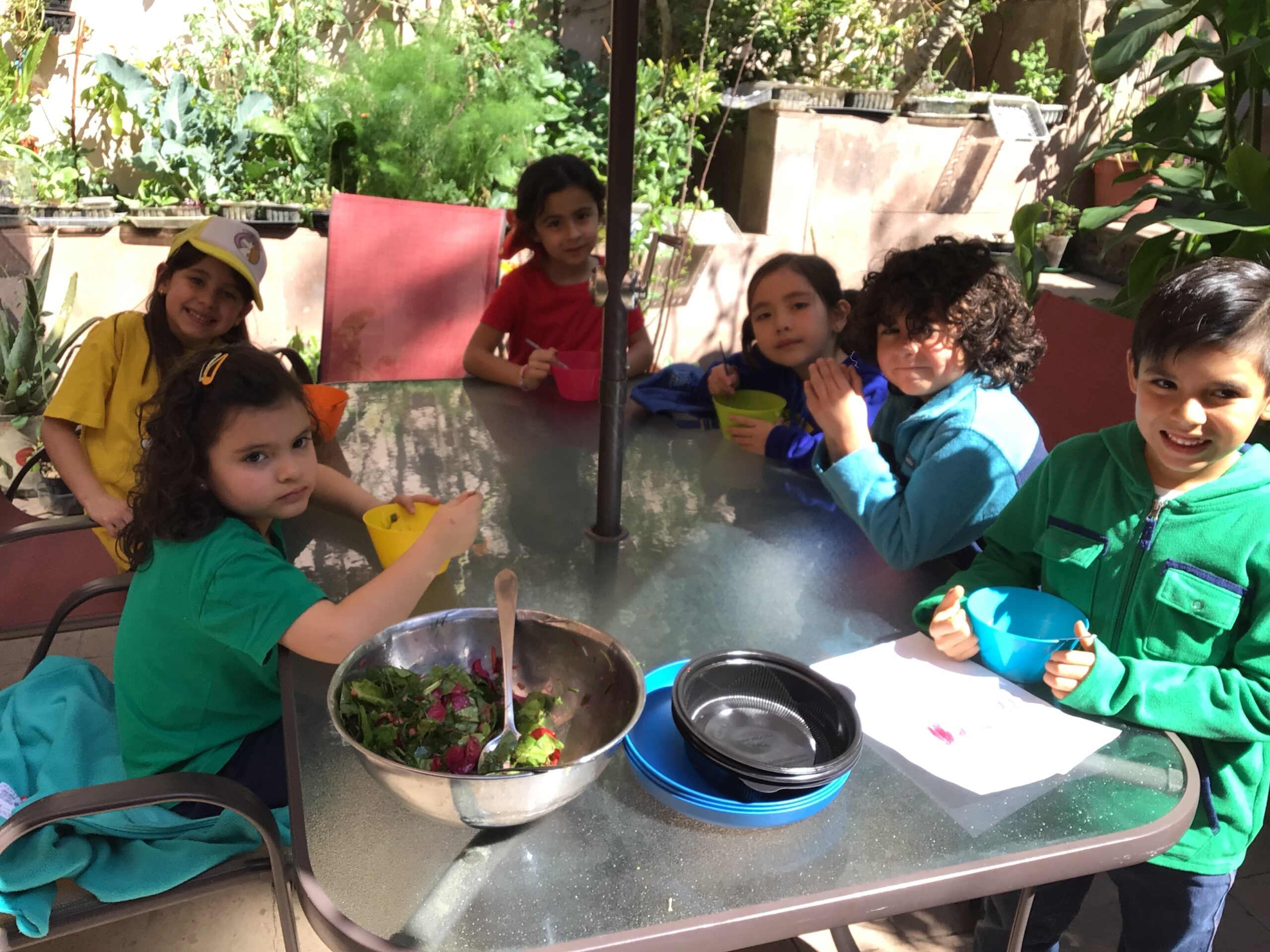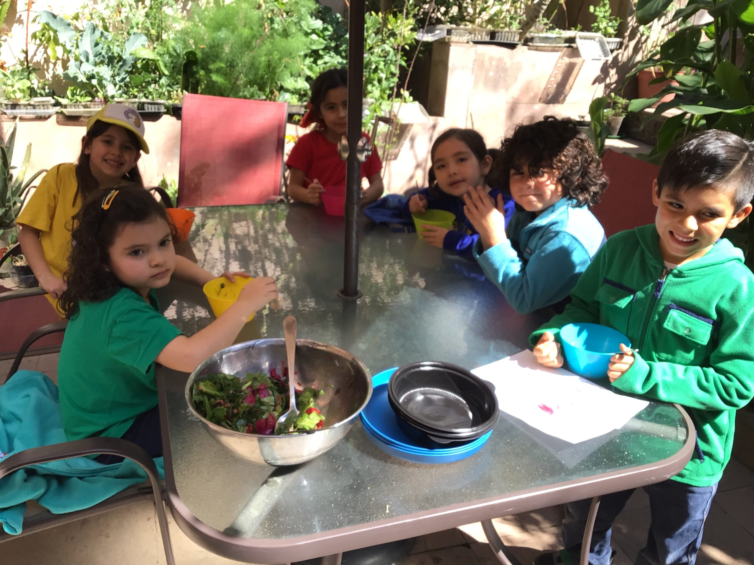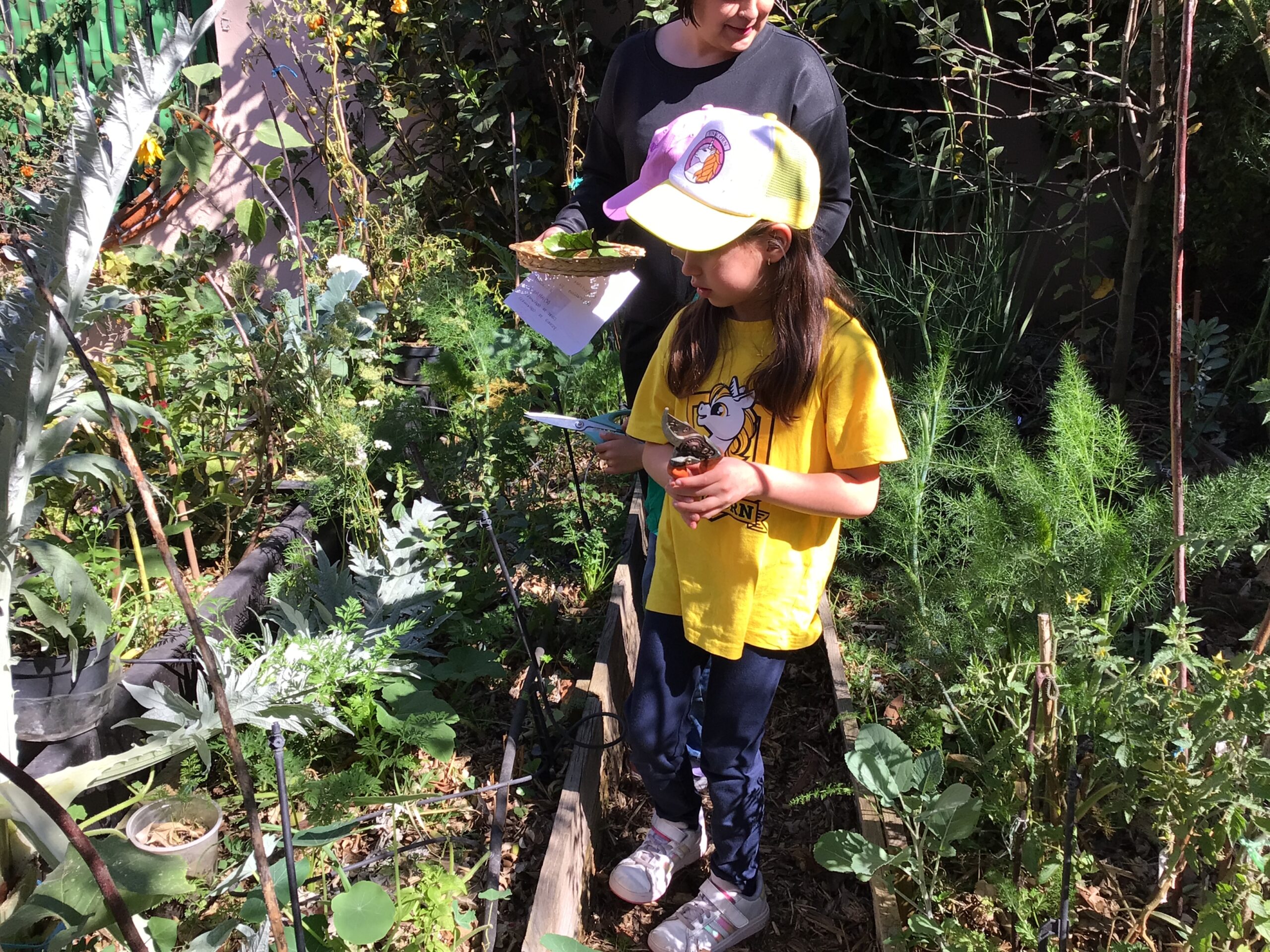 Afterwards, children were given floral shears and they carefully cut different edible leaves and flowers to then rinse and they ate in a salad.
