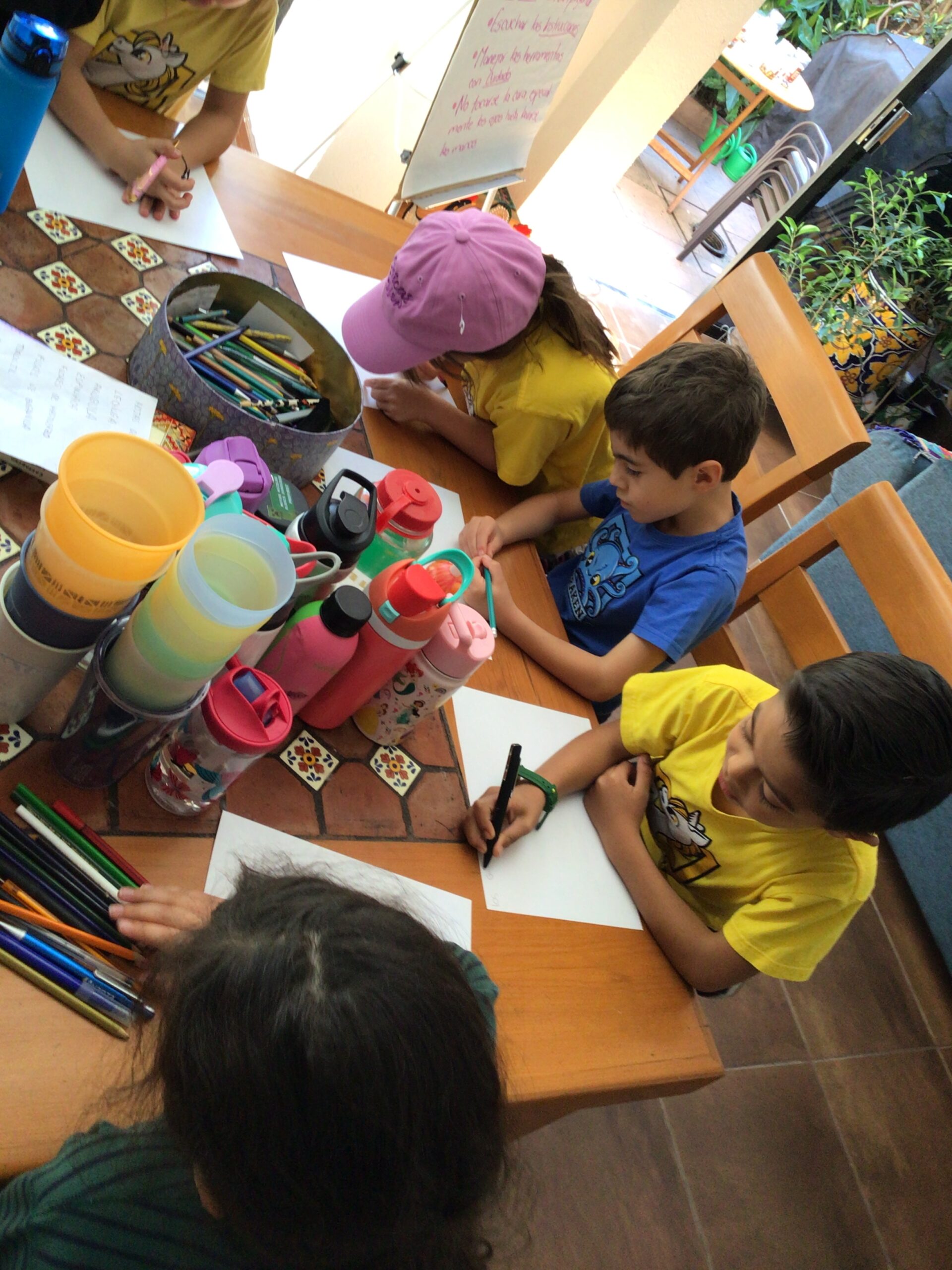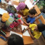 Afterwards they drew what they liked the most and to finish the visit, students planted seeds (they could choose maize, tomato, peas, chili) in a container that was filled with soil and then they watered it and took it home to look after it.
